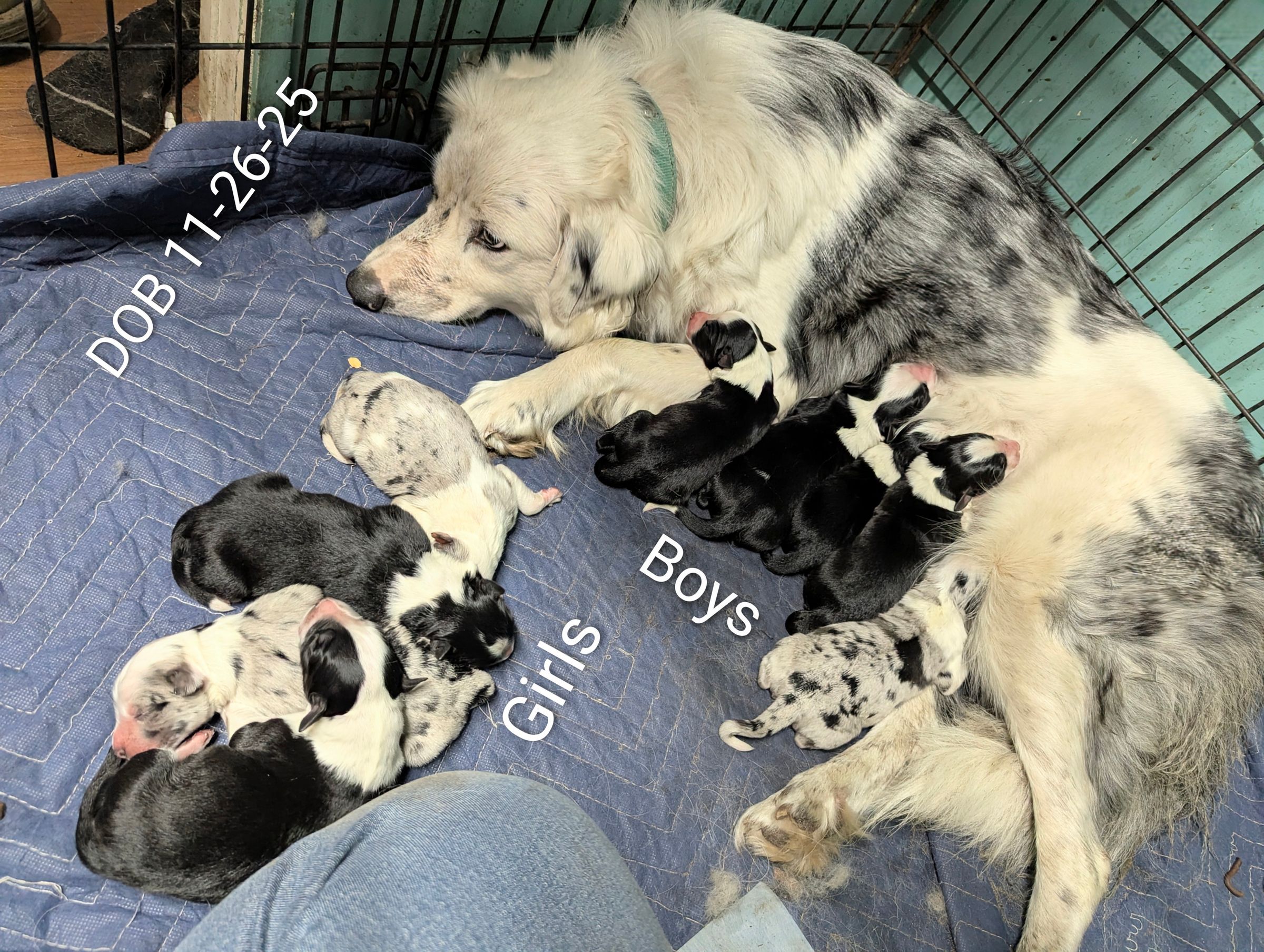 We're excited to announce that we have an upcoming litter due in January 2026. This litter will be full Australian Shepherd, between our own Shiloh II (Black Tri, Male, CKC registered) and Sugar Bear (Black Bi, Female, CKC/NKC/ASDR registered). Parents have been DNA & Health tested to ensure healthy genetics. Our pets are seen regularly by our vet, up to date on vaccines, and socialized among our kids, other dogs, cats, and livestock. Both of these beautiful dogs are very sweet and both submissive personalities, calm, intelligent, and amazing dogs.